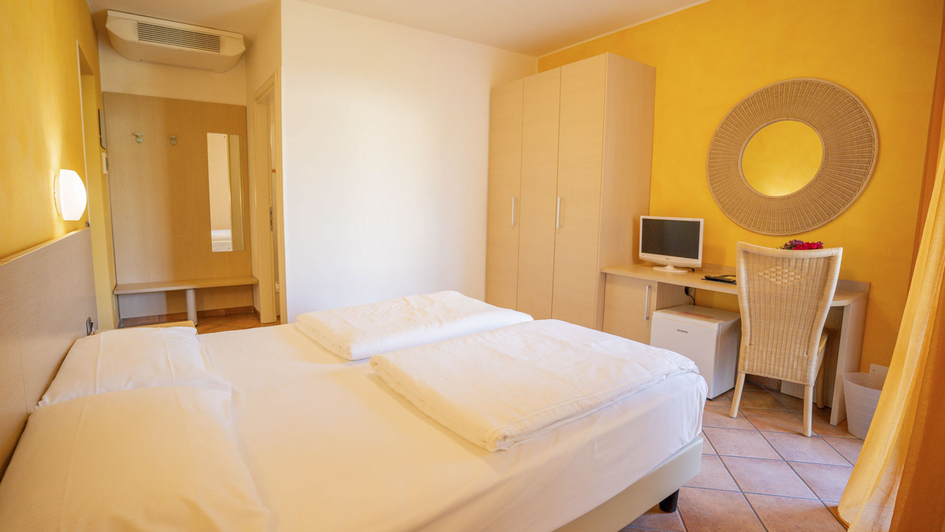 Camere con letto matrimoniale situate al primo e al secondo piano con balcone affacciato sul giardino o sulla piscina, elegantemente arredata. Possibilità di poltrona letto su richiesta. Può ospitare da 2 a 4 persone. Dispone di TV-SAT, aria condizionata e bagno
